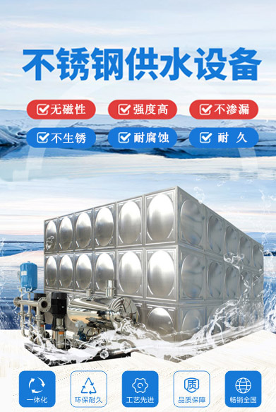 不銹鋼生活水箱特點(diǎn):1、水箱模板采用高強(qiáng)度沖壓工藝制作成標(biāo)準(zhǔn)板塊現(xiàn)場(chǎng)焊接而成;2、材質(zhì)選用SUS304食品級(jí)不銹鋼,具有較強(qiáng)的耐腐性;3、...